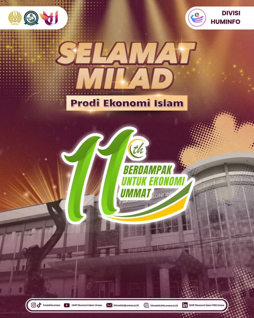 Di usia yang ke-11 ini, Semoga Prodi Ekonomi Islam UNESA semakin unggul dalam mencetak generasi cerdas, amanah, dan berakhlak mulia.